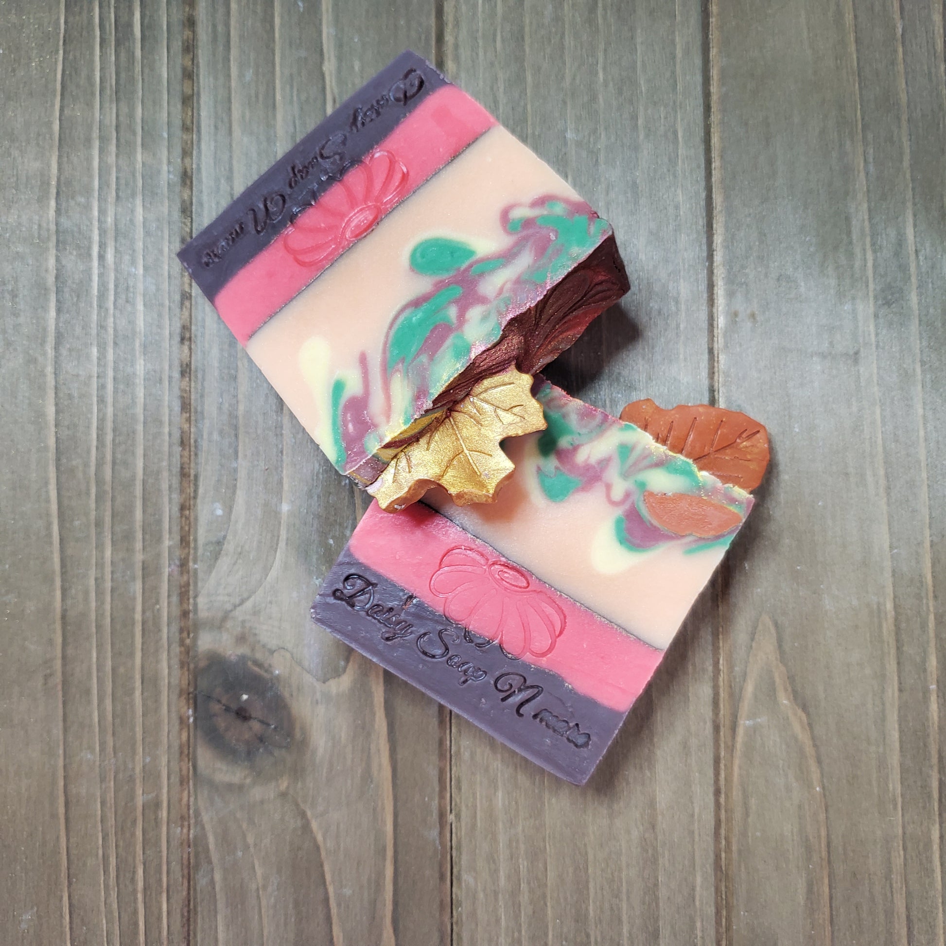 Ingredients: saponified oils of: olive, coconut, responsibly sourced palm, sweet almond and castor. Fragrance oil. Mica colorant.